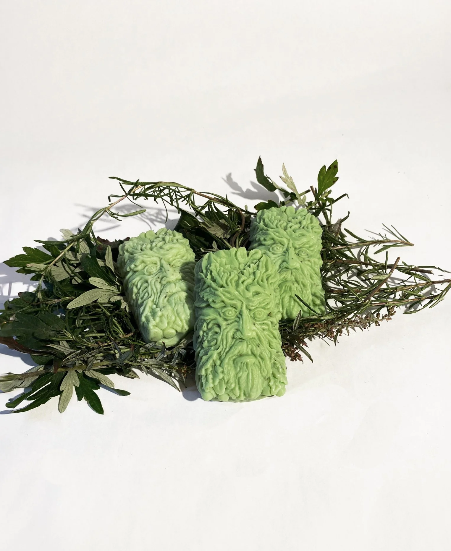 Infused with acorns, dandelion flower essence, vetiver, thyme, and wild mint, this vibrant soap calls forth the greening power of the earth to generate strength.